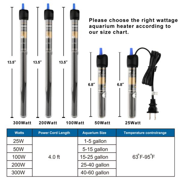 Black Long Circular Tube 300 Watt Fish Tank Aquarium Heater Images |